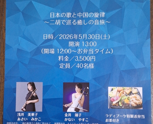 radibouquet2026-04-01 19:01:132026-04-01 19:03:105/30二胡コンサート開催のお知らせ