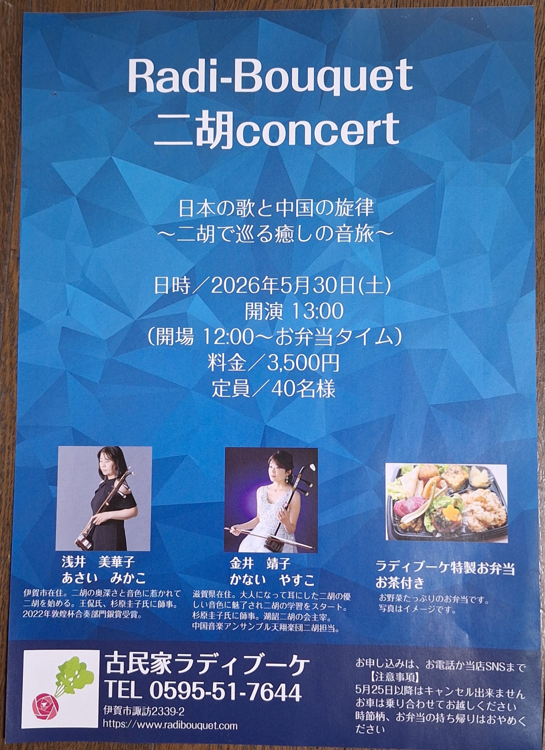 とっても素敵な二胡の音色とラディブーケ特製お弁当で、ほっこり癒しの時間をお楽しみください!